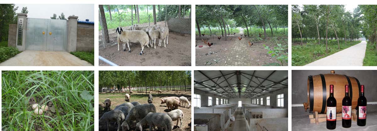 園內(nèi)散養(yǎng)黑豬、白豬,以玉米、麩皮、豬菜喂食,生長(zhǎng)期十個(gè)月,肉質(zhì)細(xì)膩,營(yíng)養(yǎng)價(jià)值高,口感好;散養(yǎng)綿羊、山羊,以園內(nèi)生長(zhǎng)青草、野菜為食,肉質(zhì)鮮嫩,營(yíng)養(yǎng)成分豐富;散養(yǎng)三黃雞、油雞、柴雞,主要以螞蚱、草籽、昆蟲(chóng)、野菜為食,配以玉米面、豆粕輔助,所生雞蛋富含人體所需多種營(yíng)養(yǎng)成分、維生素、蛋白質(zhì)和氨基酸。因散養(yǎng)畜禽運(yùn)動(dòng)量大,光照充足,風(fēng)吹雨淋,并能在土壤里攝取各種礦物質(zhì),所以體格健壯,極少生病,飼養(yǎng)人員定期喂食園內(nèi)生長(zhǎng)的魚(yú)腥草、板藍(lán)根等植物,預(yù)防疾病。